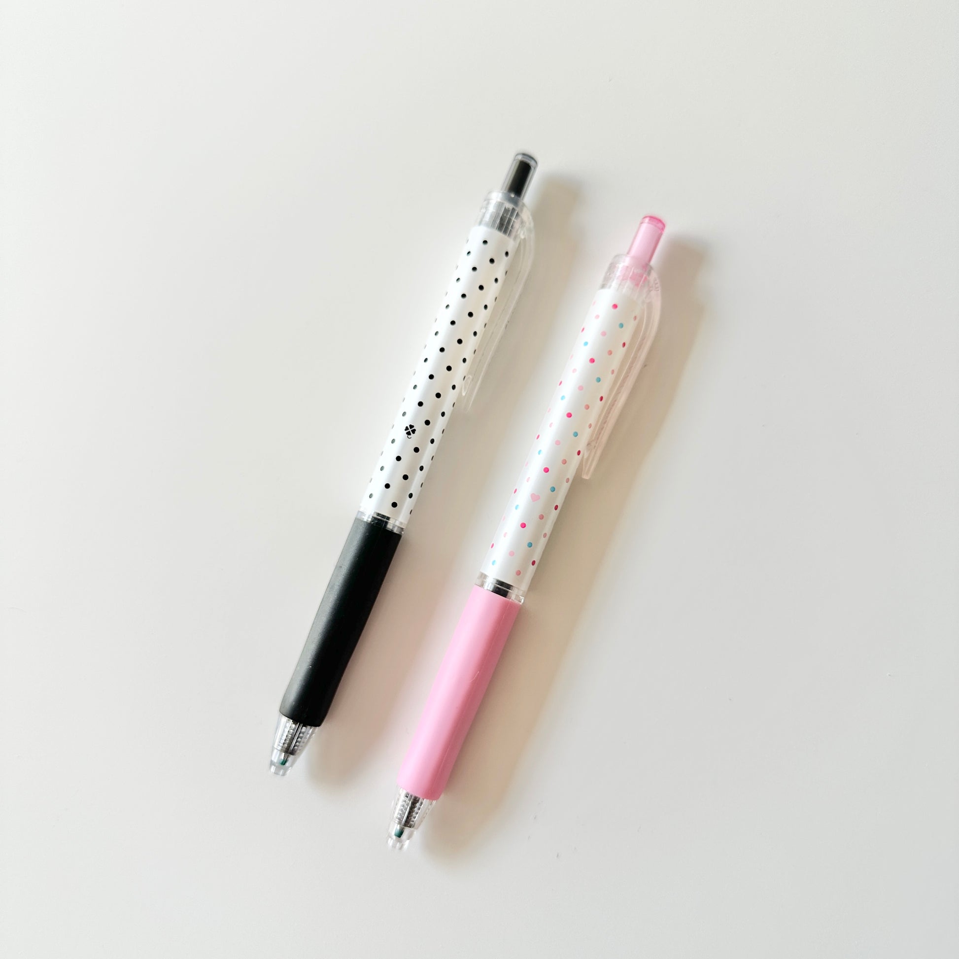تحتوي على حبر جل مائي ، مع مقبض من المطاط . إصدار خاص بنقاط لطيفة تصميم جذاب جدًا مع قبضة ناعمة. رأس القلم مدور بدون حواف لتقليل الاحتكاك مع الورق، مما يوفر تجربة كتابة سلسة للغاية